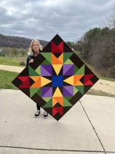 As an artist and graphic designer, Lori Schaefer has always been fascinated with the colorful barn quilt signs that decorate the rural Wisconsin landscape. When she retired a few years ago from managing the Packaging Design Department at Organic Valley, she decided to learn how to make barn quilt paintings, and was motivated to make one for the pole building on her property. When she finished that project, she was hooked! Then she started learning more about the patterns, their meanings, and the history of barn quilts. This has led Lori to recreate some of her favorite folk art patterns, design her own creations, and to teach classes.